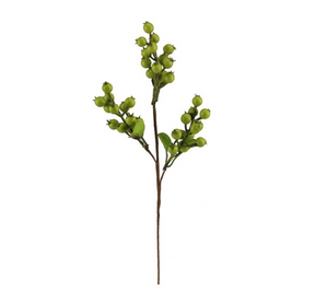 Step up your floral display with the help of this special end berry pick! This pick features plump berries in a lovely green hue, complete with buds and some slender leaves throughout, making this pick a versatile piece! This pick can be used alongside a number of floral enhancements, or even other berries, to really make your design pop! Use this pick in a decorative pot, hanging planter, or even a wreath to unlock its wide-range of decorative possibilities!