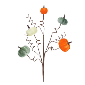 Enhance your Fall display with this charming velvet pumpkin spray! This spray features a collection of fuzzy pumpkins, paired with twisty twigs that make this spray perfect for a seasonal wreath! Pair this spray with other Fall picks, or even garland for a complete display! Hang your finished wreath from the front door or porch area, and match it with some free-standing pumpkins to send your display over the top!