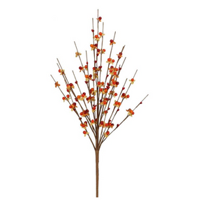 Add this lovely berry/bittersweet bush to enhance your wildflower display! This bush features an assortment of orange, red and yellow berries, paired with slender leaves and woody stems, allowing this bush to pair marvelously with other wild stems, bushes and sprays! Consider using this pick in a clay pot, hanging planter or decorative vase to get the most out of its eccentric looks!