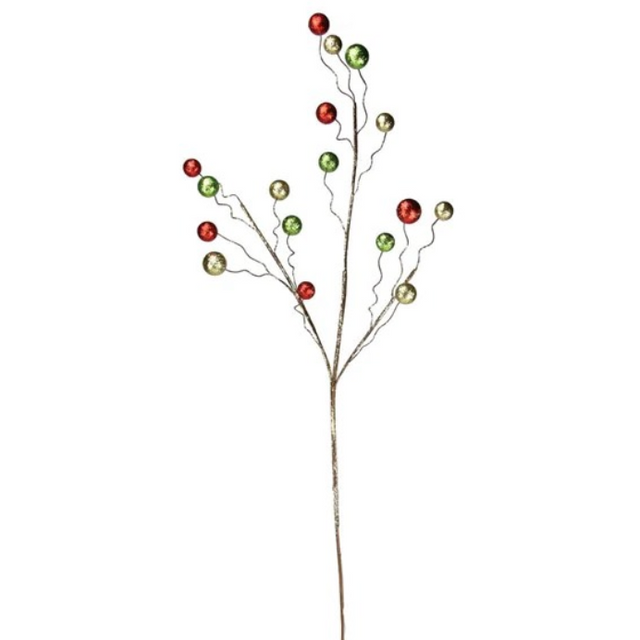 Enhance your decorative display with the help of this shining glitter ball spray! Featuring an assortment of red, lime and gold glitter balls attached to twisted glittery stems, this spray will look fantastic when paired with other glitter or metallic elements!