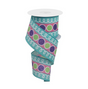 Wrap this unique and stylish stripe glitter circle w/loops on pongee fabric ribbon around your next display to show off your unmatched creativity! This ribbon features a wired edge, along with white loops, pink and teal stripes, and finally green and glittery lavender dots to really set this ribbon apart from the norm!