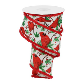 Use this marvelous cardinal/royal burlap/drift ribbon to set your display over the top! This ribbon includes a wired edge, along with a group of bright red cardinals perched on branches that stretch through the entire roll! Consider using this ribbon in a Christmas or Winter theme.