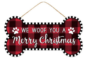Christmas has gone to the dogs! Celebrate the most wonderful time of the year next to your favorite four-legged friend with this "Woof" sign! The dog-bone shape and stylish plaid background make for a versatile design piece! Consider hanging this sign on the mantle, or above the dog's bed!