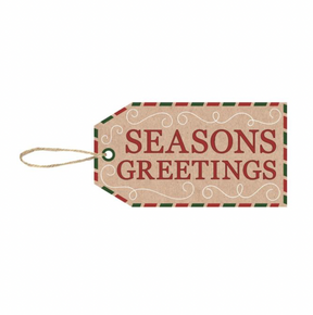 12"L x 6.5"H Seasons Greetings Tag is backordered and will ship as soon as it is back in stock.