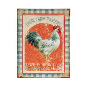 Add rustic charm to your space with this 13.5" x 10" distressed metal sign. Featuring a vibrant red-orange background and a bold blue checkered border, it’s perfect for farmhouse-style décor. Durable and eye-catching, it brings warmth and character to any room.