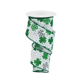 Feel the luck of the Irish when you create your next display, thanks to this patterned shamrocks on faux royal burlap ribbon! This ribbon features a sewn wired edge, and includes a collection of glittery shamrocks against a white base. This ribbon will be perfect for a St. Patrick's Day wreath, outfitted with green mesh, tubing, and even a holiday sign!