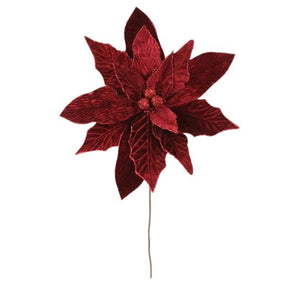 Add this marvelous poinsettia stem to your floral decor to bring an elegant look! This poinsettia features detailed burgundy petals, or bracts, making this stem an attractive addition to any floral display! Add this poinsettia to other blooming sprays, picks or bushes to get the most from its good looks! Use this stem in a wreath display, or a decorative planter!