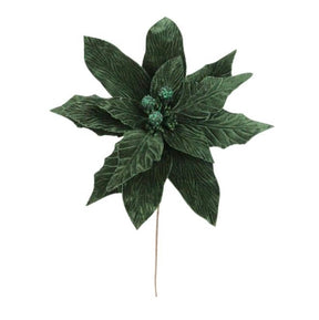 Add this marvelous poinsettia stem to your floral decor to bring an elegant look! This poinsettia features detailed hunter green petals, or bracts, making this stem an attractive addition to any floral display! Add this poinsettia to other blooming sprays, picks or bushes to get the most from its good looks! Use this stem in a wreath display, or a decorative planter!