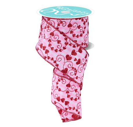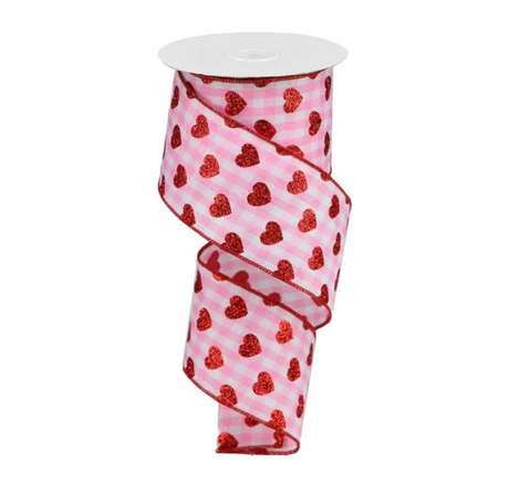 2.5" x 10yd Small Glitter Hearts/Check (Red/Pink/White)