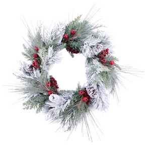 24"Dia Snowy Pine/Berry Wreath is backordered and will ship as soon as it is back in stock.