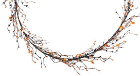 Got a sweet tooth for candy corn? This candy corn/pip garland will surely satisfy your appetite for tasteful Halloween decor! This garland features a number of candy corn pieces along with small orange and black leaves, allowing it to fit in seamlessly with a number of Halloween elements! Hang this garland around a bowl full of candy to keep with the theme! You may also want to add some assorted pumpkins or gourds to your display!