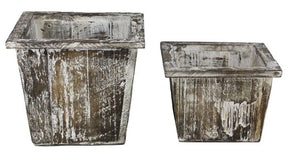 S/2 8.75"-10.5"Sq Antique Wood Planter