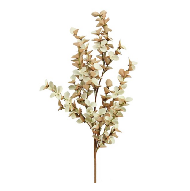 Celebrate the healing and stylish nature of the eucalyptus plant by adding this foam eucalyptus/paper leaf spray to your floral display! This spray contains clusters of delicate leaves that will bring an air of elegance to your decor! Use this spray in a decorative vase, and stage it as a table centerpiece! You can also pair this spray with some hanging vines or branches for an even more dynamic display!