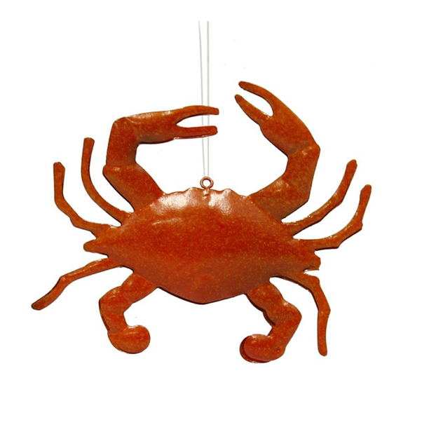 Hang this tasteful tin crab ornament to pay tribute to some of the tastiest creatures of the sea! This crab features a distinct red hue and defined pincers, making it an eye-catching piece for your Christmas tree, garland, or even a wreath tribute! Pair this crab with other sea creatures, or even a matching sign, to keep it in stylish company!