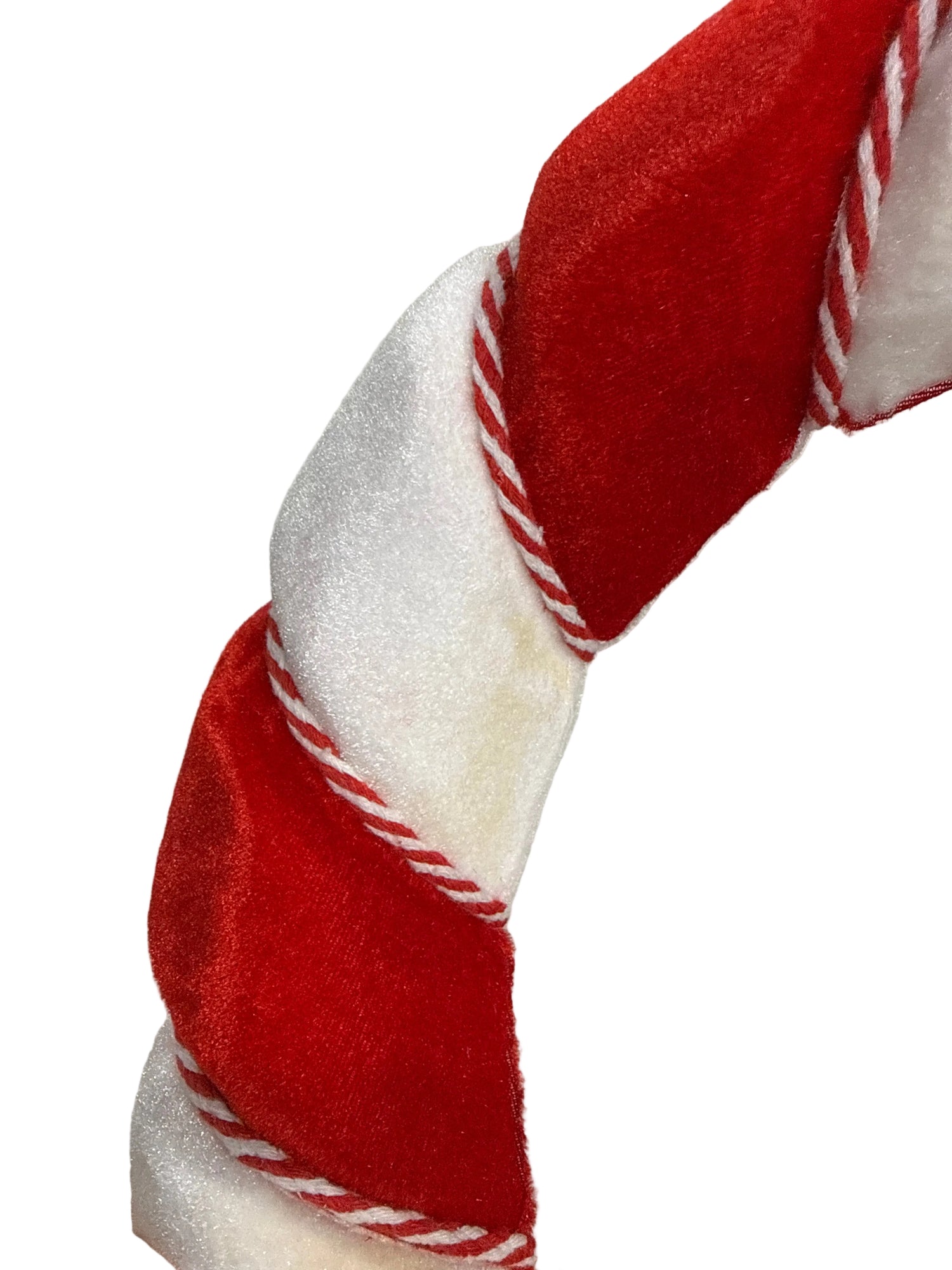 Use this colorful fabric wreath w/striped roping as an eye-catching enhancement to match your theme! Featuring a red and white pattern divided by striped roping, this wreath is certainly a unique piece that commands attention for all the right reasons! Hang this wreath around decorative signs, garland, or other wreaths outfitted with ribbon and ornaments!