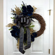 Approximately 24”, formed on a 18” grapevine wreath. Designed on a Facebook LIVE.
